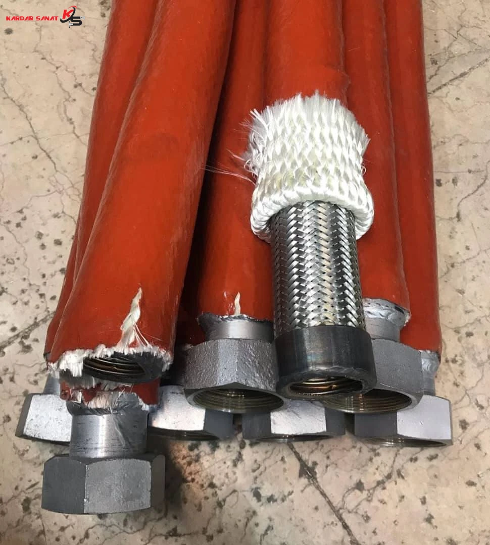روکش نسوز شیلنگ خرطومی استیل (Stainless Steel Flexible Hose) یک پوشش محافظتی است که از فایبرگلاس بافته شده و با سیلیکون مقاوم به حرارت پوشانده شده است. این روکش روی شیلنگ‌ های فلزی (استیل) قرار می‌ گیرد تا آن ‌ها را در برابر آتش، گرمای شدید و آسیب‌ های محیطی عایق و محافظت کند.