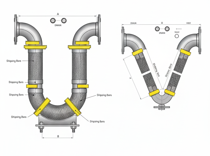 ما در صنایع حساس مثل انتقال بخار یا جابجایی مواد شیمیایی، نمی توان از لوله های معمولی استفاده کرد چون لوله های ثابت در برابر لرزش و گرمای زیاد خیلی زود می شکنند. شیلنگ خرطومی شکل u و v دقیقا برای همین شرایط سخت ساخته شده است تا بتواند لرزشهای شدید و تغییرات حرکتی را به راحتی جذب کند.